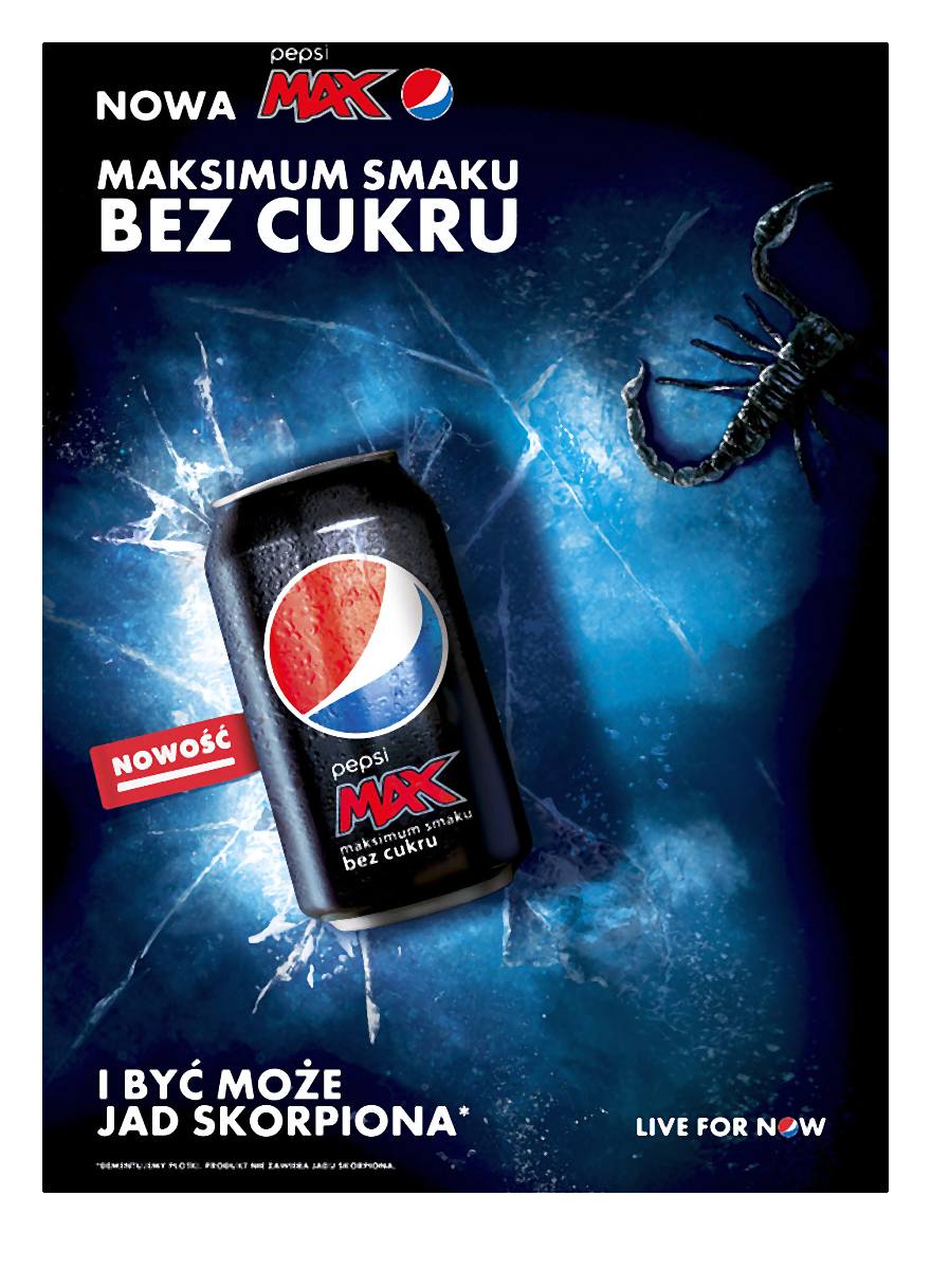 1 marca będziecie mogli oglądać w telewizji, głowią się nad tajemniczym składnikiem, który sprawia, że Pepsi Max ma tak wyrazisty smak, a przy tym ani grama cukru. Stąd zakręcone pomysły z jadem skorpiona w roli głównej. A co tak naprawdę zawiera tajemnicza czarna puszka? Jedno jest pewne – to Max składniki! Zainspiruj się, otwórz swoją Pepsi Max i ciesz się maksymalnym smakiem bez cukru. Jesteśmy pewni, że wytropisz w niej coś niezwykłego.
