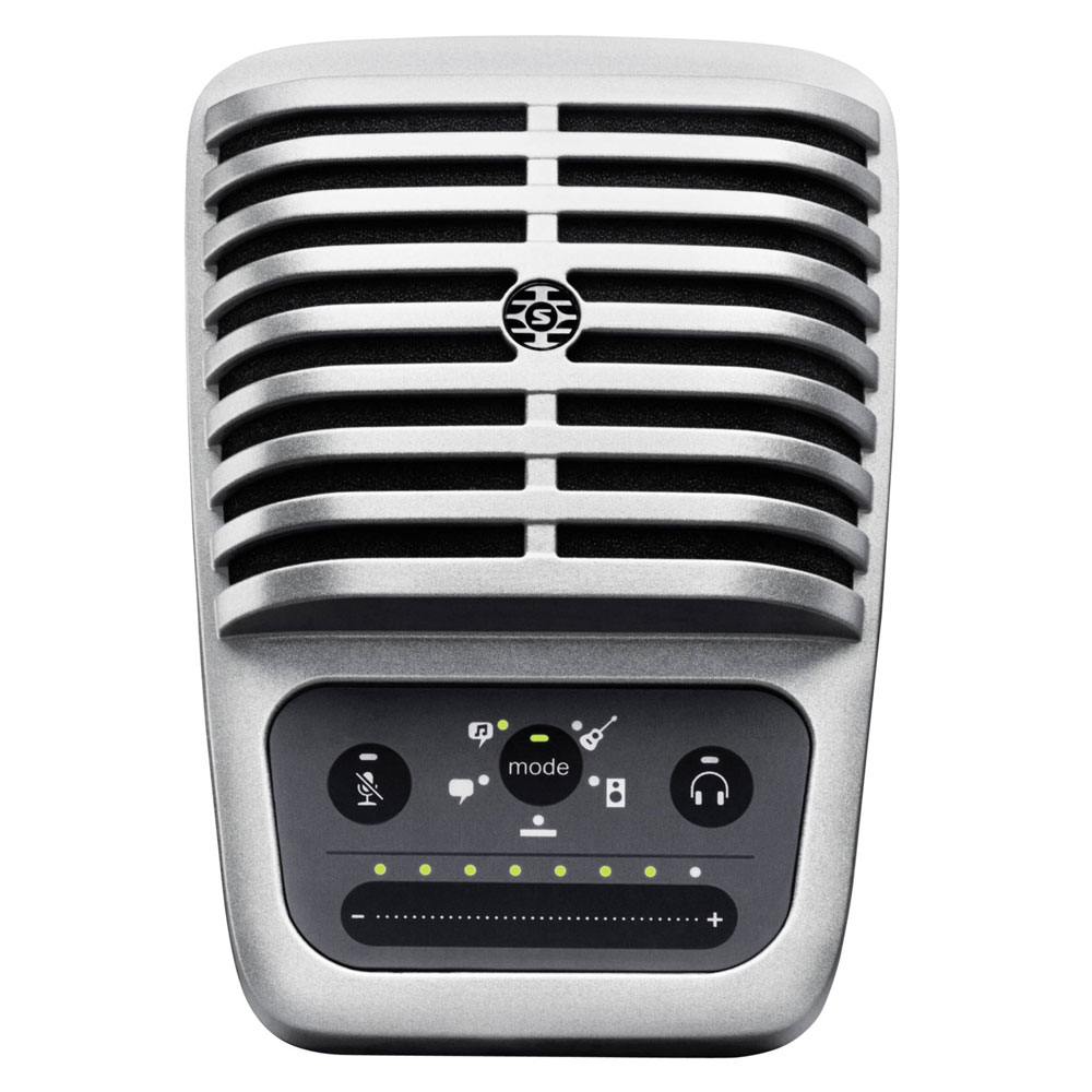 • Shure Motiv MV88 – Cyfrowy stereofoniczny mikrofon pojemnościowy został stworzony do mobilnych nagrań, rejestracji na żywo, wywiadów oraz do pracy w domu z urządzeniami Apple wyposażonymi w złącze Lightning. Urządzenie posiada aż pięć wstępnie zaprogramowanych ustawień DSP, element mikrofonowy obracany o 90 stopni w celu elastycznego pozycjonowania, konstrukcję mid/side dla klarownego obrazu stereofonicznego czy też certyfikat MFi dla pełnego wsparcia sprzętów Apple ze złączem Lightning. Cena sugerowana modelu to 759zl